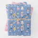 This Nutcracker Christmas wrapping paper features 3 separate, whimsical patterns in a pink, yellow and blue colour theme. Sheet 1: a nutcracker and dancing ballerina pattern; Sheet 2: candy-canes and snowflakes; Sheet 3: candycane striped pattern in pink, yellow and blue. A unique and adorable giftwrap for the holidays!