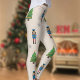 Christmas legging with an illustration of a Nutcracker pattern, Christmas Trees and some stars on a light brown background. Perfect for a gift or to wear at Xmas!