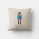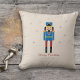 A Christmas pillow with an illustration of a Nutcracker and some stars on a light brown background. Perfect to offer or for your Xmas decoration.