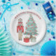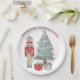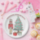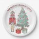 Magical Christmas Party paper plate with a watercolor illustration of Nutcracker, Christmas tree and presents