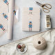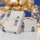 A Christmas wrapping paper with an illustration of a Nutcracker pattern and some stars on a light brown background. Perfect to decorate your Xmas gifts!