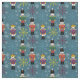 Use this nutcracker fabric for all of your holiday sewing projects. The design features a repeat pattern with nutcrackers and multi-coloured snowflakes against a blue background.