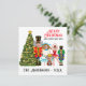 Created for a family of five, this funny holiday card features two Nutcrackers, Clara, ballerina and Mouse King. It will bring joy to all those who receive it. An elegant green and gold sugar plum Christmas Tree decorates the scene. A simple white background with vintage font for all the customisable text complete the design.