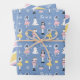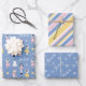 This Nutcracker Christmas wrapping paper features 3 separate, whimsical patterns in a pastel pink, yellow and blue colour theme. Sheet 1: a nutcracker, mouse king and dancing ballerina pattern; Sheet 2: candy-canes striped pattern; Sheet 3: Fa la la pattern in blue and white. A unique and adorable giftwrap for the holidays!