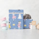 This nutcracker Christmas wrapping paper features a cute, whimsical pattern of nutcrackers and dancing ballerinas over a blue background. Personalise it by adding your child's name in a stylish script font. The perfect personalised giftwrap for the holidays!