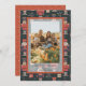 This cute and modern Scandinavian Christmas holiday photo card features a navy blue background with nutcracker patterns. The reverse side features a red background with white snow patterns. Personalise it for your needs. You can find matching products at my store.