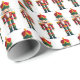 Nutcracker soldier in vibrant reds, greens, and yellow on a white background