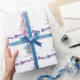 This glamourous and festive custom wrapping paper features a Nutcracker Christmas theme. An image of an illustrated Nutcracker is printed in the centre, standing in front of a Christmas tree. Faux glitter adds a glam touch to the illustrations. The greeting "Merry Christmas" is printed in a large, purple script font. You can personalise the wrapping paper to include your own name or other custom text.