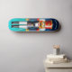 This funny skateboard deck features a nutcracker toy soldier in blue hussar uniform, with a red hat, big spiky white beard, and a black pointed moustache.