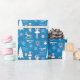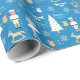 Nutcracker,  Ballerina, Christmas tree, rocking horse, snowflakes on a blue snowy background Christmas Wishes Wrapping paper