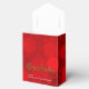 Christmas Nutcracker Trio-PARTY FAVOR BOX, tent style-Three Nutcrackers standing side by side on top of a red Christmas bokeh pattern. The first nutcracker is dressed in blue and white with gold embellishments. The centre nutcracker is dressed in red and gold with gold embellishments. The third nutcracker is dressed in green and white with silver embellishments. The nutcrackers are on the front and back sides of the box along with a gold script image that reads: Merry Christmas. Both of the gold text pieces can be left as is or removed if you don't want them. One text area is in place on the bottom front for a personalised note or signature. Edit the white text to say anything you like. Delete the text if it's not wanted. Each one of these nutcrackers are available separately on assorted Zazzle gifts and products. Coordinating Zazzle gifts and party supplies is available.