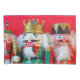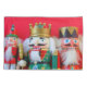 Three cheerful nutcrackers on a red background to escort you through your holiday dreams