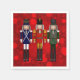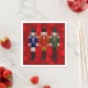 Christmas Nutcracker Trio -Three Nutcrackers standing side by side on top of a red Christmas bokeh pattern. The first nutcracker is dressed in blue and white with gold embellishments. The centre nutcracker is dressed in red and gold with gold embellishments. The third nutcracker is dressed in green and white with silver embellishments. Each one of these nutcrackers are available separately on assorted Zazzle gifts and products. Choose any size of Zazzle paper napkins.