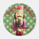 A realistic image of a traditional Nutcracker is printed on a green background with a festive snowflake pattern on a cute Christmas magnet. There is a template for your custom name in red letters and you can personalise the greeting. An excellent gift for any ballet lover or dancer.