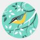 Decorative bird stickers with stylised Red Breasted Nuthatch art on a teal colour background and swirl branches with matching leaves