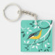Stylised red breasted nuthatch vector art with branch swirls and leaves on an aqua colour background