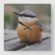 A close-up photograph of a slate blue and pale orange Eurasian Nuthatch, Sitta europaea, sitting on a garden table.