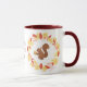 Playful squirrels gathering acorns amidst vibrant fall foliage and a playful phrase espressing the excitement of the season.
