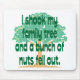I Shook My Family Tree and a Bunch of Nuts Fell Out on a tree background.