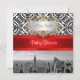 Customisable Invitations and accessories with an iconic view of the New York City skyline from the top of 30 Rockefeller Centre, featuring a black & white photo of the Empire State Building, lower Manhattan including the World Trade Centre. It also features a black & white damask pattern, and a red ribbon as well as a white gradient label with your choice of a silver or gold look frame.