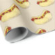 Gift wrap features an original illustration of a classic NYC hot dog with mustard on a bun.