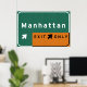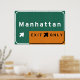 NYC New York City Manhattan Exit Only Interstate Highway Freeway Road Sign Design -Automotive Car Travel Souvenir Gifts -Authentic & Accurate FHA/MUTCD Typography. -Authentic FHA/MUTCD Pantone Colour Specifications.