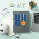 New York City NYC Block Letter Logo with star. Blue letters and orange star representing the official colours of New York City.