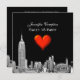 Elegant, stylish, chic customisable invitations and accessories with an iconic view of the New York City skyline, featuring an etched look photo of the ESB and Chrysler Building and rear view of the Flatiron Building shown on a black background with a red metallic look heart.