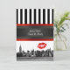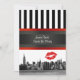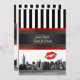 New York City Etched Skyline BW Black & White Stripe Invitation Red Ribbon, Red Lipstick Kiss Collection - Sweet Sixteen Party Invitation ========