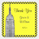 Customisable invitations and accessories with an iconic view of the New York City skyline, featuring a black & white etched look photo of the ESB against a black and yellow chequerboard background design inspired by city cabs