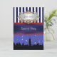 NY City Skyline Silhouette Blue Starry Sky #2, Navy Blue & White Stripe Invitation Collection - Sweet Sixteen Party Invitation