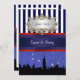 Customisable Invitations and accessories with an iconic silhouette view of the New York City featuring the Empire State Building, Bank of America Tower and the Chrysler Building against a starry blue sky. They also feature a navy blue and white striped pattern, a red and blue ribbon and a white gradient label with your choice of a silver or gold look frame.