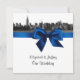 Elegant, chic and stylish customisable invitations and accessories with an iconic wide angle black and white etched look East River view of the New York City skyline, featuring the Emp St Building, Bank of America Tower, Chrysler Building and many others. It also features a royal blue satin look bow.
