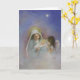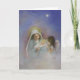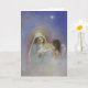 Mary cradles her newborn son, Jesus, under the adoring gaze of an angel. Original oil painting by artist Liz Viztes. Holiday card for 2022.