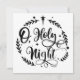 This black and white card features the words "O Holy Night" in beautiful black hand lettering calligraphy. The word grouping is surrounded by black laurel branches. On the back it has a place for a photo and you can add your name and year.