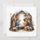A tender depiction of the nativity unfolds beneath a glowing star, where Mary and Joseph kneel in awe beside the newborn Savior. Shepherds gather reverently, their expressions lit by quiet wonder, while gentle sheep rest nearby in the stillness of the manger. This sacred scene invites reflection on the miracle of Christ’s birth and the timeless hope it brings to all. On the reverse side, a smaller version of the image accompanies a beloved scripture from Luke 2:10–11, completing the message with spiritual grace.