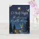 A beautiful stag deer stands in the midst of a dark blue night sky full of stars. A dove flies in the background, highlighted by the light of the full moon against the backdrop of evergreen trees. The sentiment of the card is O Holy Night celebrating the birth of Christ.