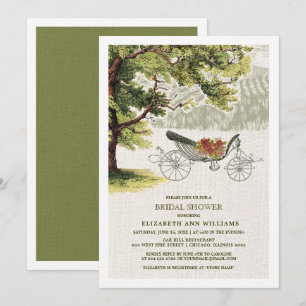 Green Beige Vintage Oak Tree Burlap Bridal Shower Invitation
