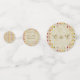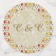 There is a pale brown circle with white marbled patterns on it which contains customisable text so you can include all the important details