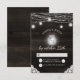 Oak Ridge Rustic Dark Brown Barn Wood, Sparkling Mason Jars, and Glowing String Lights Design with Twinkling strands of dangling lights and jars on a deep rich wood texture with white Lace accents. With Modern Typography Script Fonts. A rustic elegant country farmhouse style design - Personalised Wedding RSVP Cards!