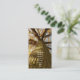 Business card with photo of oak tree looking up at huge ridged trunk and branches and crown of yellow leaves with blue sky behind. Text is customizable.