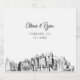 Modern Oakland wedding skyline personalised champagne label. The design showcases a stunning sketch with the ability to customise your names and exact location. Enter the Zazzle design tool for additional customisations.