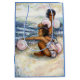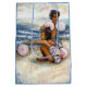 Original Painting of two girls playing with pink balloons on Coney Island Beach by New York City, Fine Art Artist, Gaye Elise Beda