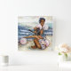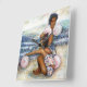 Original Painting of two girls playing with pink balloons on Coney Island Beach by New York City, Fine Art Artist, Gaye Elise Beda