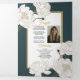 Obituary Celebration of Life Photo Flowers Green Tri-Fold Invitation