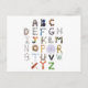 Back to school or teacher themed alphabet formed with phonetic everyday house hold objects. Fun & unique postcard to send to a child who is learning to read and learning their alphabet. customise the back with your own message or just delete option.