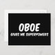 A humourous Oboe design that lets folks know Oboe gives you or a loved one superpowers.