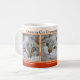 Mug featuring 3 of your own photos (funny cat pictures or other photos) framed by an orange peach striped design with a golden lining. You can also leave the photos as is if you like.