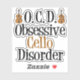 A funny cello sticker for the great cellist in your life. This cute Obsessive Cello Disorder gift features the instrument next to the humour phrase.