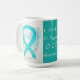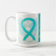 Obsessive-Compulsive Disorder (OCD) uses a teal awareness ribbon to show support for its awareness. This custom mug features teal awareness ribbon guardian angel art paintings with the message "I Hope and Support Obsessive-Compulsive Disorder Awareness!" The custom teal awareness guardian angel ribbon art picture coffee cups or mugs can be customised with personalised messages to make great cause mugs for awareness fundraisers, awareness cup gifts, or other special events or cause support occasions. Make your own customised words for a personal message of hope and support to share!